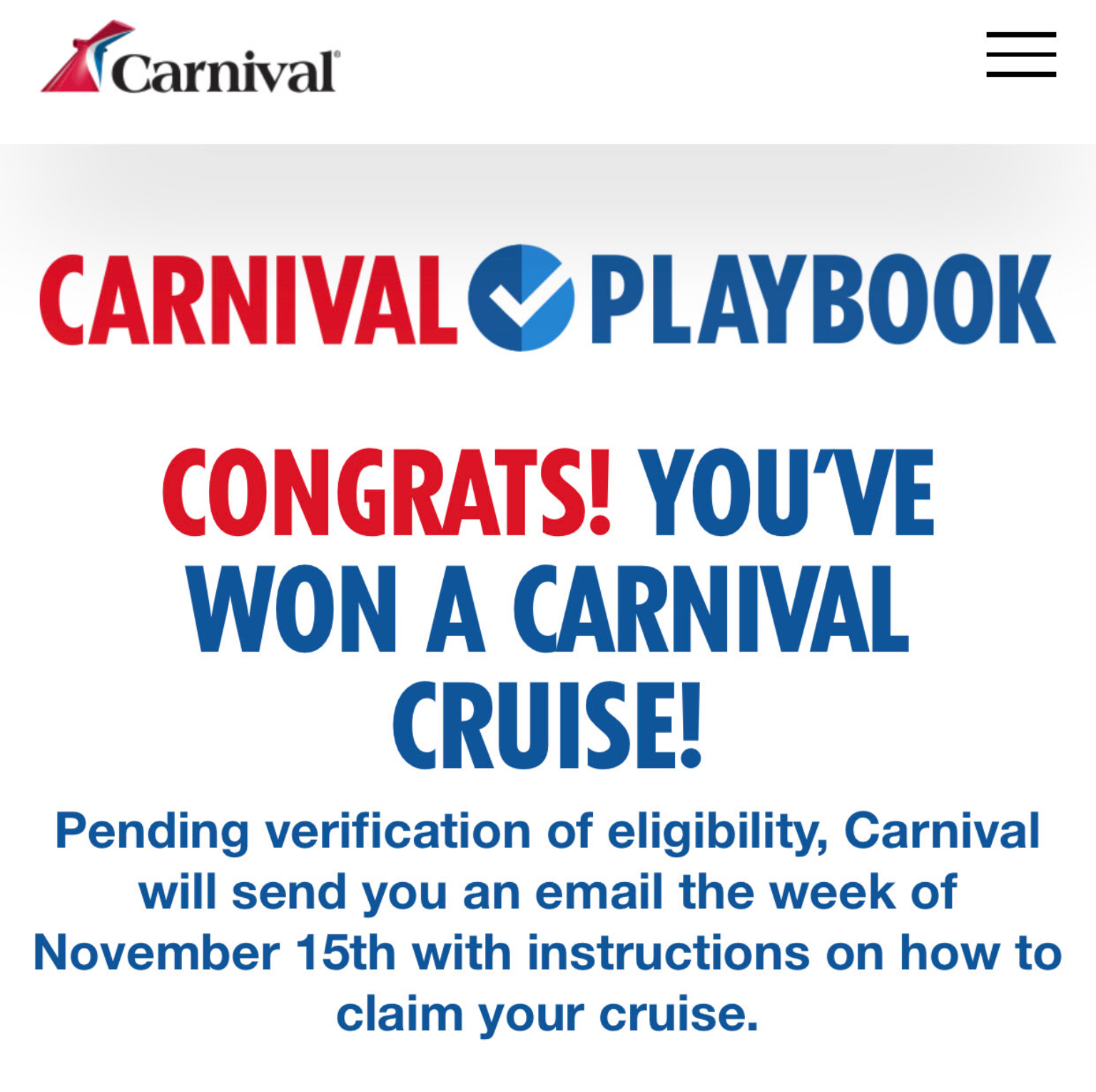 The onboard itinerary won’t be judged. Rather, it’s an opportunity for advisors to continue improving their knowledge of Carnival and skills building itineraries. Advisors will get an instant notification right after submitting notifying them if they won one of the 500 free cruises. Winners will get more info about booking their cruise starting on Nov. 19.