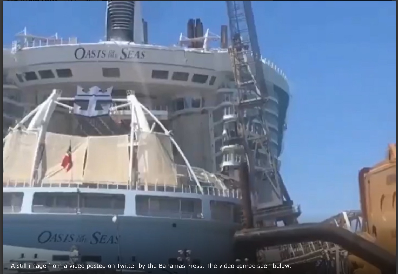 “A crane fell on Royal Caribbean’s Oasis of the Seas while the cruise ship was in dry dock in the Bahamas earlier today.