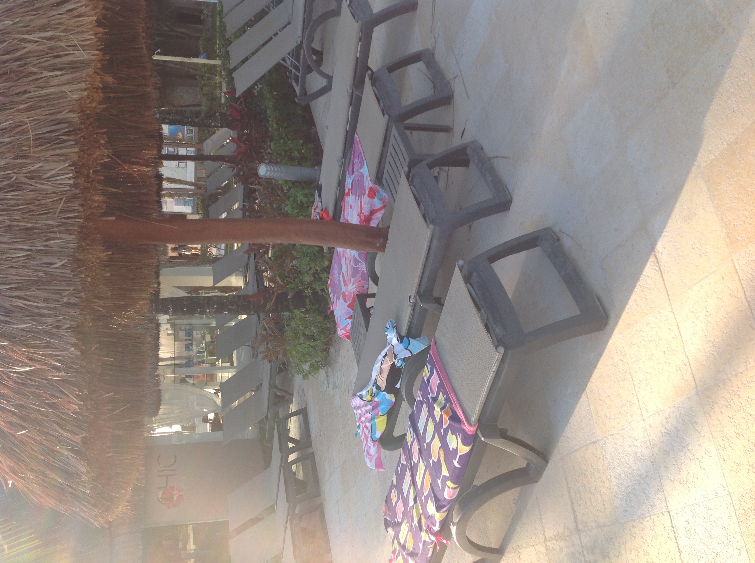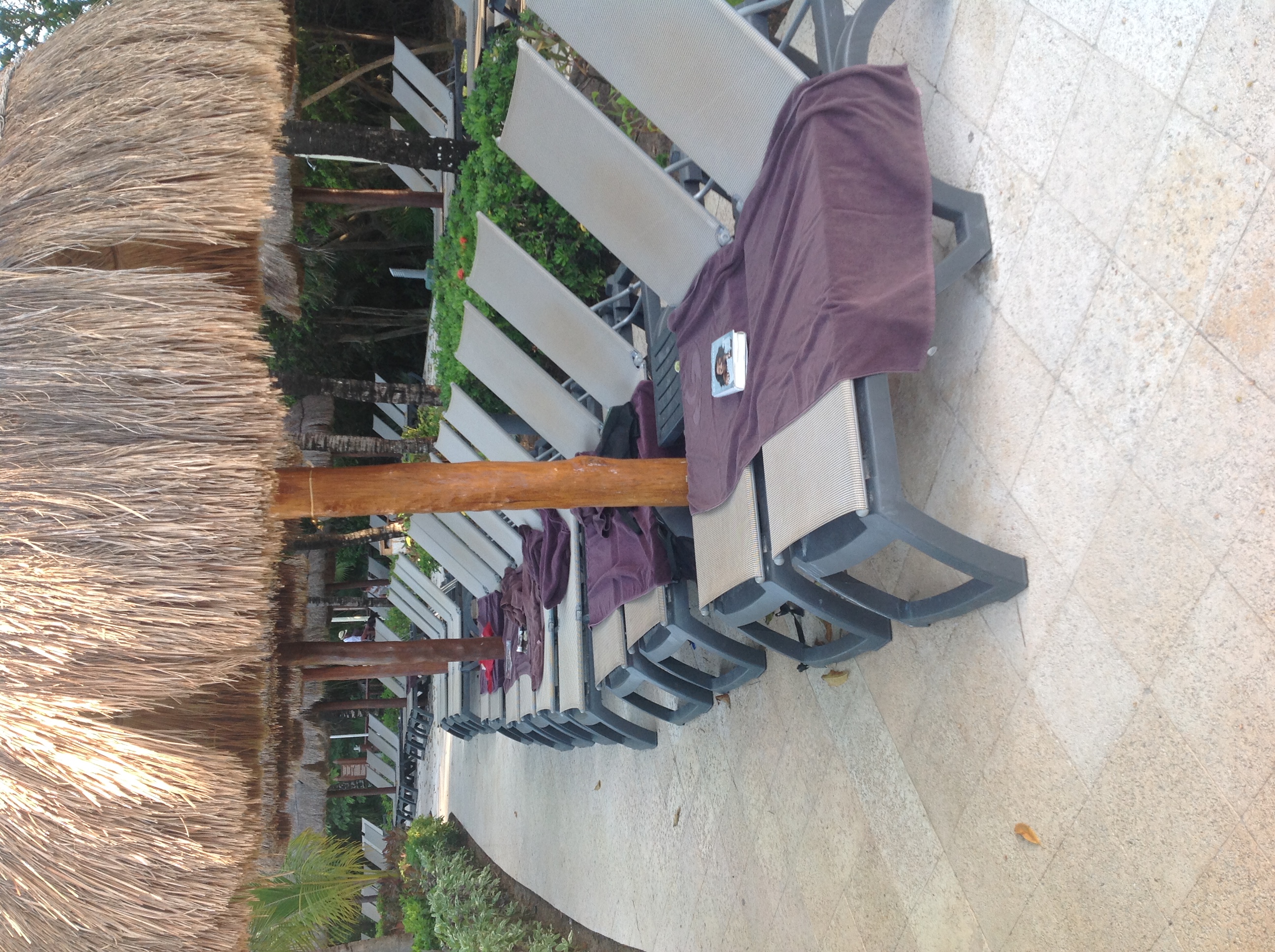 It’s 8:00 a.m. here, but it seems like the deck chair hogs have grabbed just a few prime pool loungers! Fortunately, there are tons of great chairs at the pool and at the beach, so no worries! The guests must be former cruisers!!!