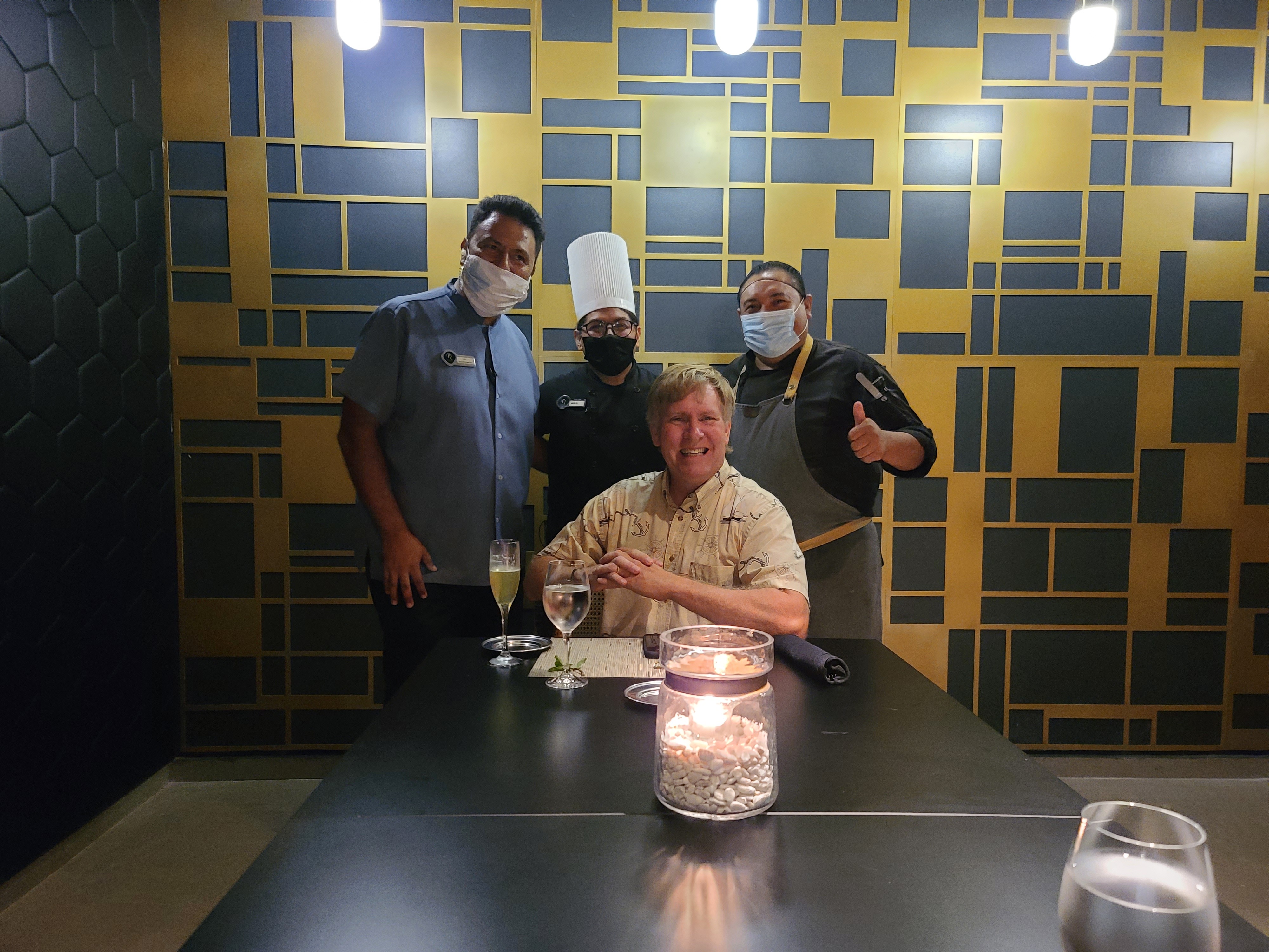 Keep in mind that due to Covid, all restaurants were not open each night, so you had to make reservations early and be aware that you had to be flexible with your dining choice. In addition, the popular Chic Caberet show was closed, but the singers and dancers performed a smaller show just outside the venue most nights.
