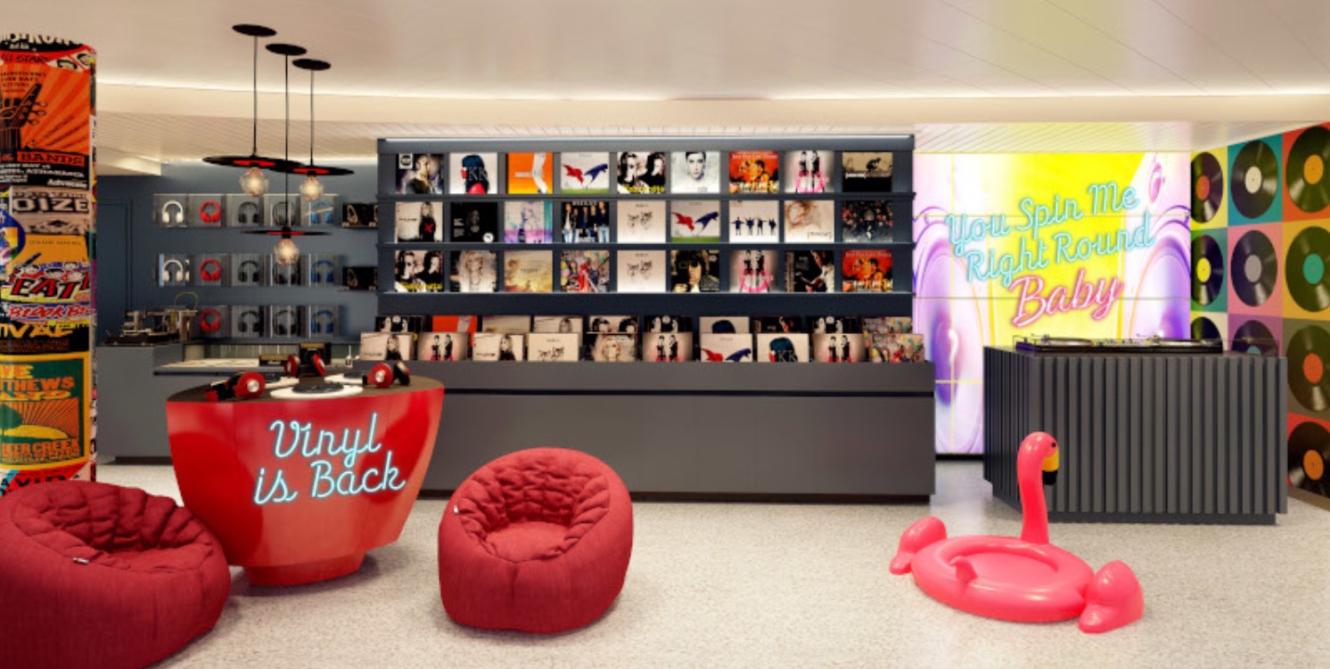Cruise Radio and other media outlets are reporting that Sir Richard Branson’s Virgin Voyages will include an old school record shop!